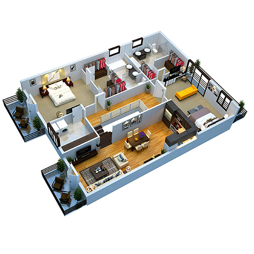Space planning & layout design optimizes interior areas’ functionality, flow, and aesthetics, ensuring efficient use while enhancing comfort and visual appeal.
