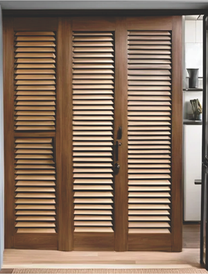 Stylish louvered doors offering ventilation privacy and timeless appeal